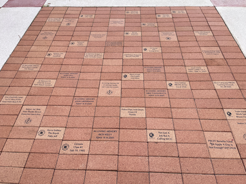 The Walk of Honor, located at the Palm Beach County Firefighters Memorial, is a place of celebration and remembrance. Bricks located here bear the inscription of recruit academy class names, individual’s promotional dates, station slogans, retiree’s years of service, and the names of loved ones that are forever memorialized. The Walk of Honor provides an opportunity to reflect on active and past fire service members, as well as their contributions to the fire service and community.You can support the Walk of Honor at the Chief Herman W. Brice Fire Rescue Complex by purchasing a brick, and join others who have supported individuals, departments, organizations, and our fallen firefighters.